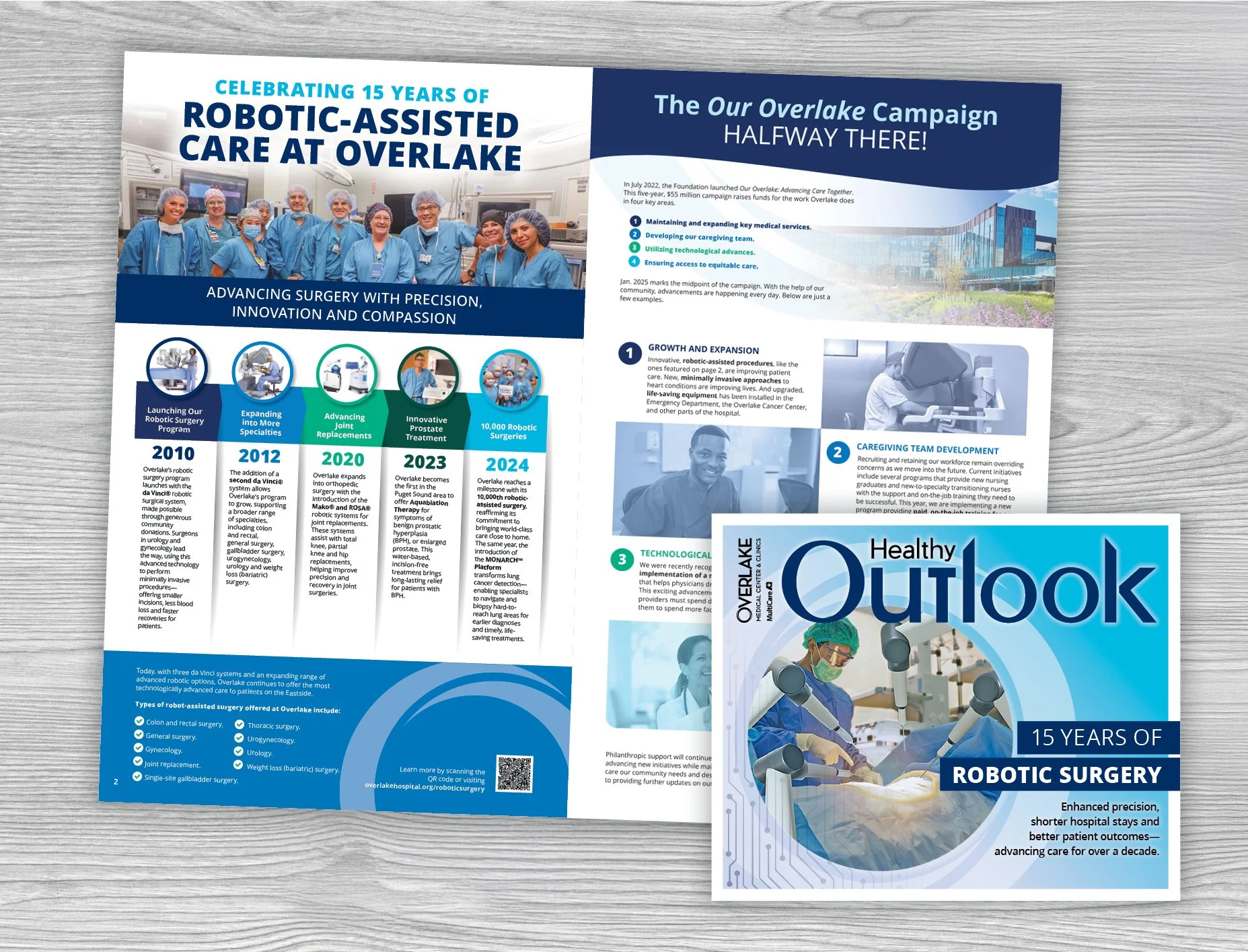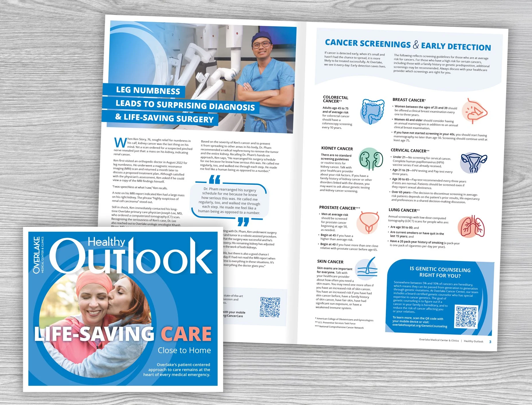My solution: I design Healthy Outlook, a quarterly newsletter mailed to more than 140,000 households. Each issue brings together feature articles, service highlights, and patient resources in a clean, photo-driven layout. Strong grids, consistent typography, and thoughtful use of imagery keep the content engaging and on-brand. The publication earned a 2024 Aster Gold Award for External Newsletter Series, recognizing excellence in healthcare communication and design.
